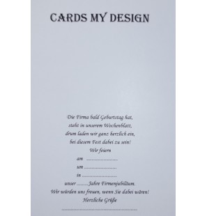 Die Karte ist handgefertigt und sorgfältig aus den hochwertigsten Materialien hergestellt. Im inneren befindet sich eine elegante weiße Klappkarte. Auf der rechten Seite befindet sich ein Text, den Sie selbst schreiben können. Auf der linken Seite können Sie Ihr Firmenlogo einfügen. Das Firmenlogo geben Sie bitte bei der Bestellung an.< Anpassung an Kundenbedürfnisse > oder per E-Mail: info@cardsmydesign.com Die Farben der Originalkarte können leicht vom Foto abweichen.